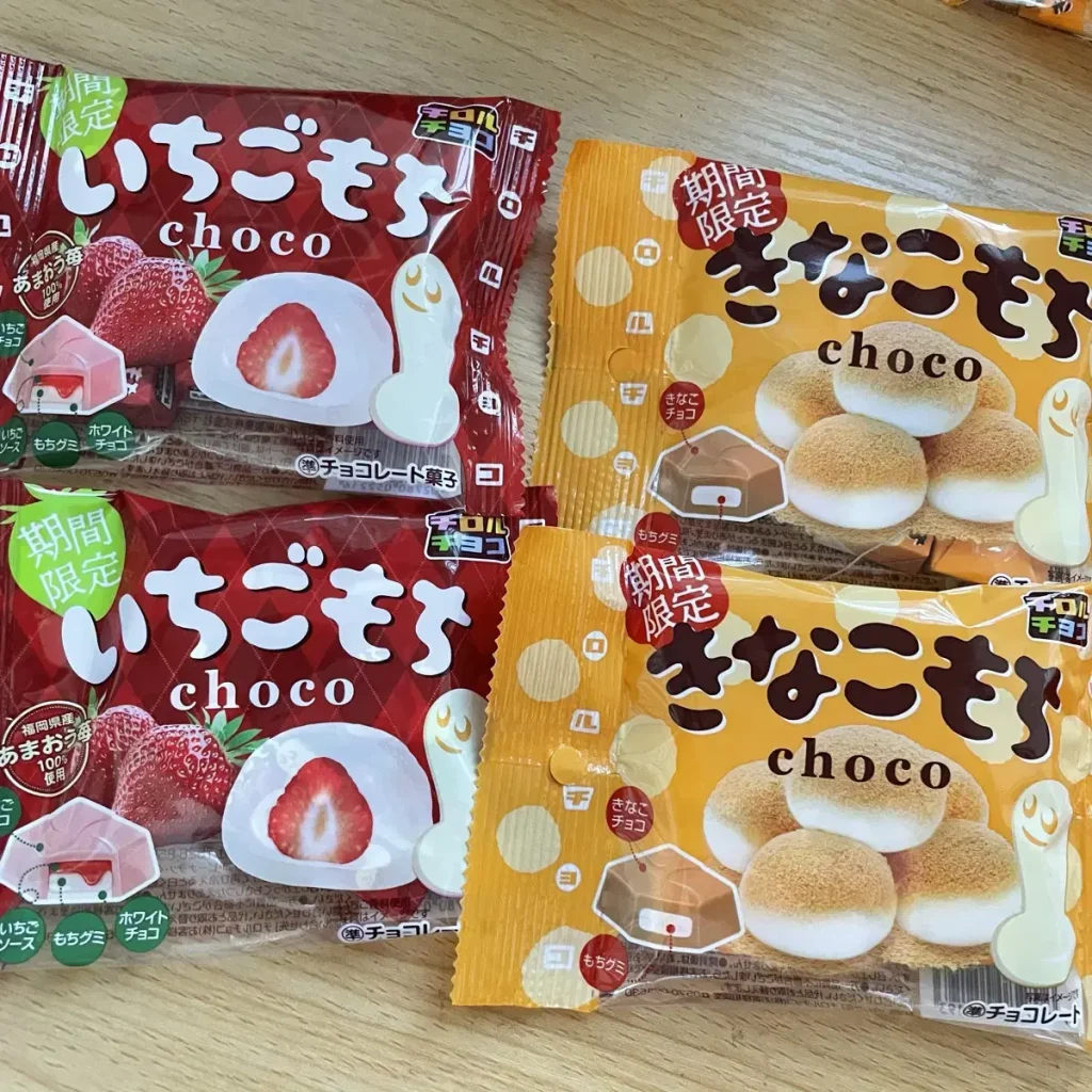 키나코모찌는 인절미 맛의 초콜릿 안에 모찌가 들어가 있어 어른들이 특히 좋아하는 간식입니다. 한국에서 구매하면 일본 현지보다 2배 이상의 가격을 내고 구매해야 하니 많은 분이 오사카 여행 시 반드시 구매하는 간식입니다.